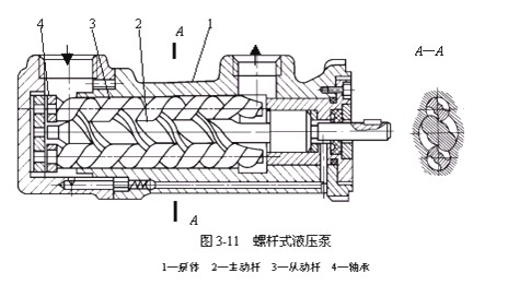 螺杆泵啮合线较长,吸、排油口之间的封油长度大,所以容积效率高,工作压力高达20MPa。螺杆泵结构紧凑,工作平稳,噪声小,常被用于精密机床液压系统。其缺点是螺杆精度要求高,加工较困难。