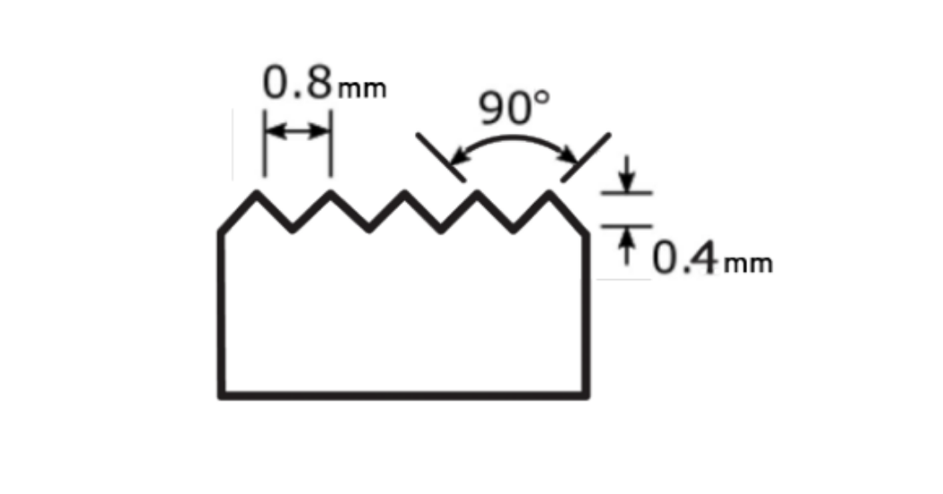 处理 螺旋锯齿表面处理也是一个连续凹槽,类似于标准库存表面处理,因为凹槽是使用 90° 夹角“V”工具生成的。对于所有尺寸,槽深 1/64”,进给深度为 1/32”。