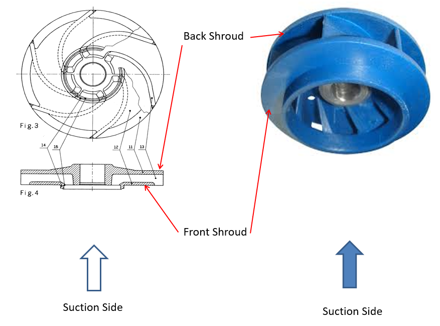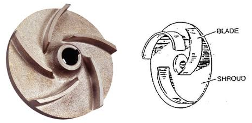 第一个,可以说是最坚固的设计是封闭式叶轮。在这种设计中,液体沿着由叶片形成的通道沿路径向下流动,并通过两个护罩在顶部和底部(或根据轴方向的前后)“封闭”。下面的两张图片说明了这种设计。