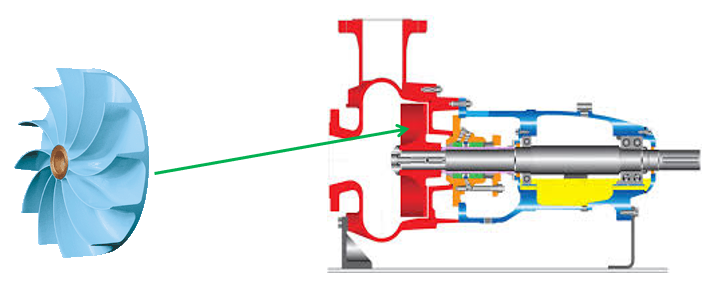 下图很好地展示了叶轮,旁边的剖面图说明了泵内的叶轮位置