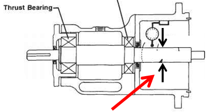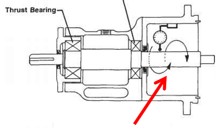 无论推力轴承类型如何,轴端游隙通常不应超过 0.25 mm (.010”) TIR。