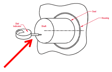 密封腔与轴中心线的垂直度应约为每 25 毫米密封腔孔 0.015 毫米(每 1 英寸密封腔孔 0.0005 英寸)。注意:确保轴端间隙不影响读数。