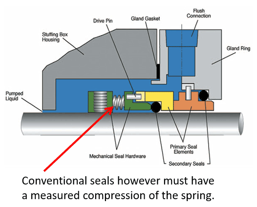 所有密封件都有某种类型的弹簧机构来提供密封面的初始压缩,通常称为预紧力。集装式密封件具有内置预紧力,仅需要安装人员在启动前移除固定片。