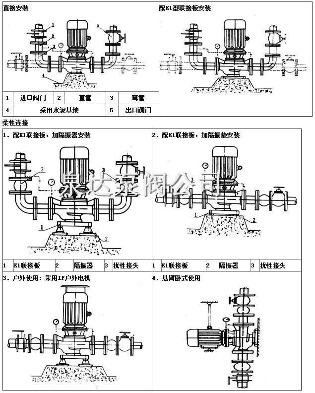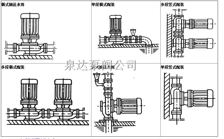 6.管道泵可根据管路布置的要求采用泵的竖式和横式安装。